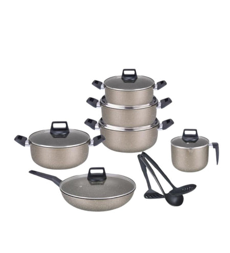 Our Harvest Cookware Set is crafted with premium materials to withstand high temperatures and daily use. The advanced non-stick coating allows for healthier cooking with minimal oil, while the ergonomic handles provide a comfortable grip. Whether you're sautéing vegetables, grilling meats, or flipping pancakes, this cookware set delivers exceptional results every time.