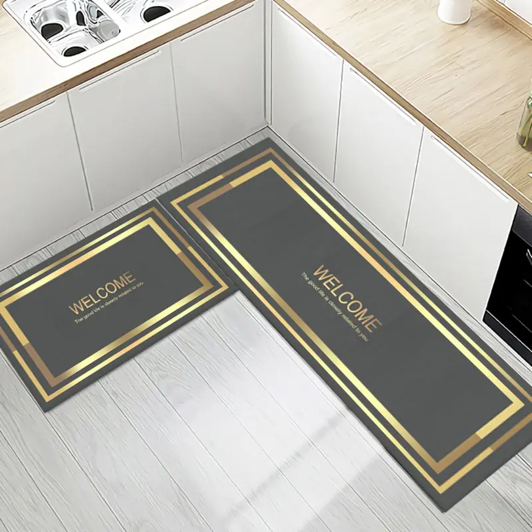 - Enhance your kitchen with this set of 2 classic design style carpet runners, designed to combine minimalist elegance and functional comfort.